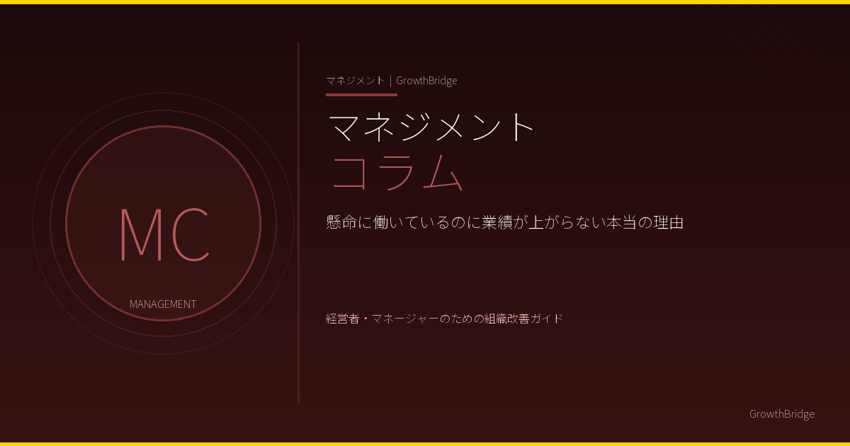 中小企業の経営者やマネージャーであれば、一度はこの壁にぶつかったことがあるのではないでしょうか。本記事では、現場が懸命に働いているにもかかわらず業績が伸び悩む「構造的な原因」と、それを解消するための考え方をお伝えします。