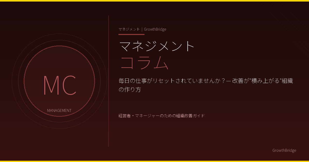 一生懸命働いているのに仕事は楽にならず、「出口の見えないトンネル」を進み続けている感覚に陥っていませんか? 本記事では、その原因である「リセットの構造」と、改善が積み上がる組織への転換方法をお伝えします。